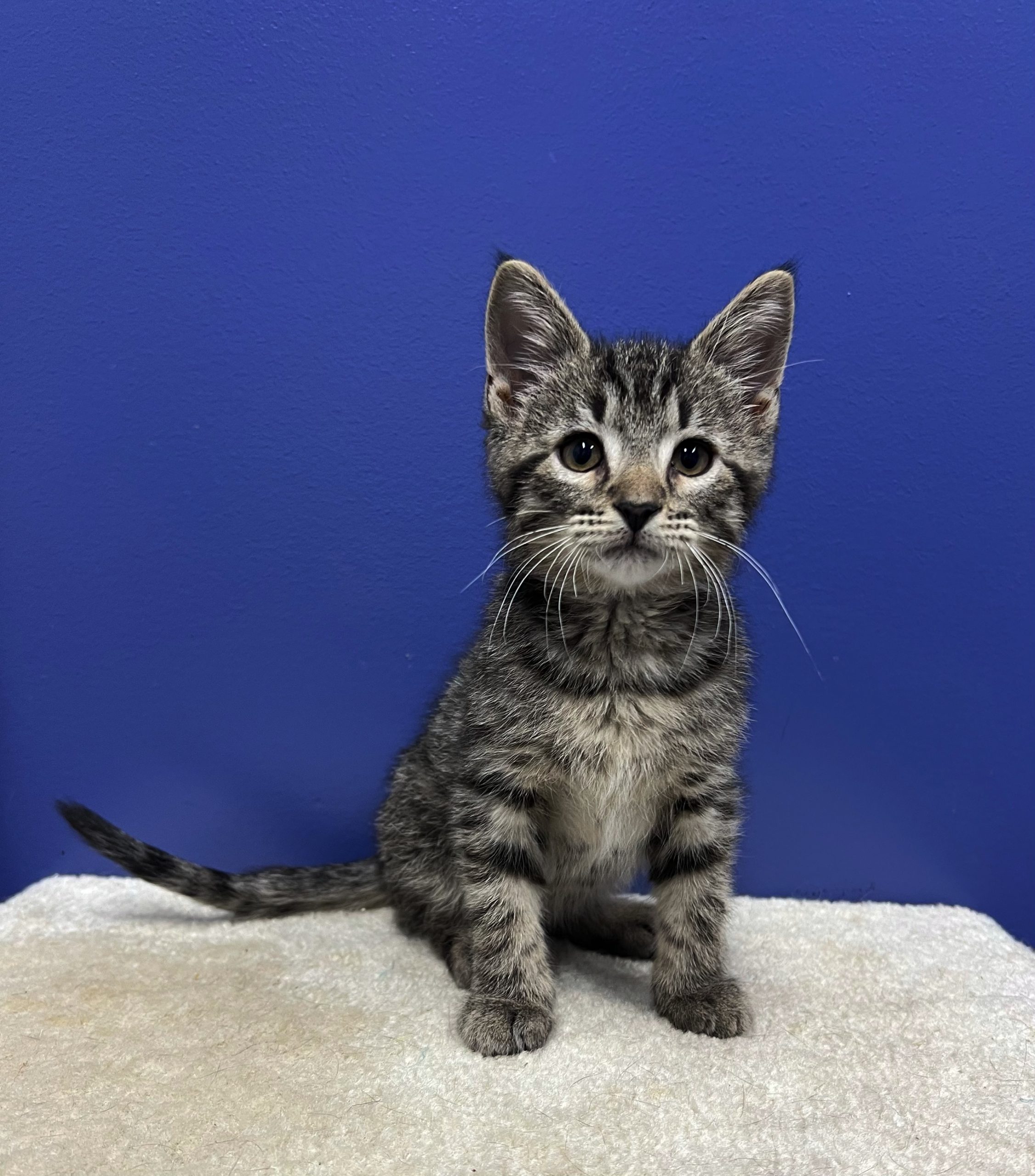 Alvin is SO cute & smart. He is 10 weeks old and very active. He loves to hang out with nice, adult cats & play until he is tired. Alvin was found alone as a very young kitten. He had injuries to his tail but is all healed and 100% now. Alvin, like his namesake, is mischievous and fun! Whoever adopts him will be so lucky.