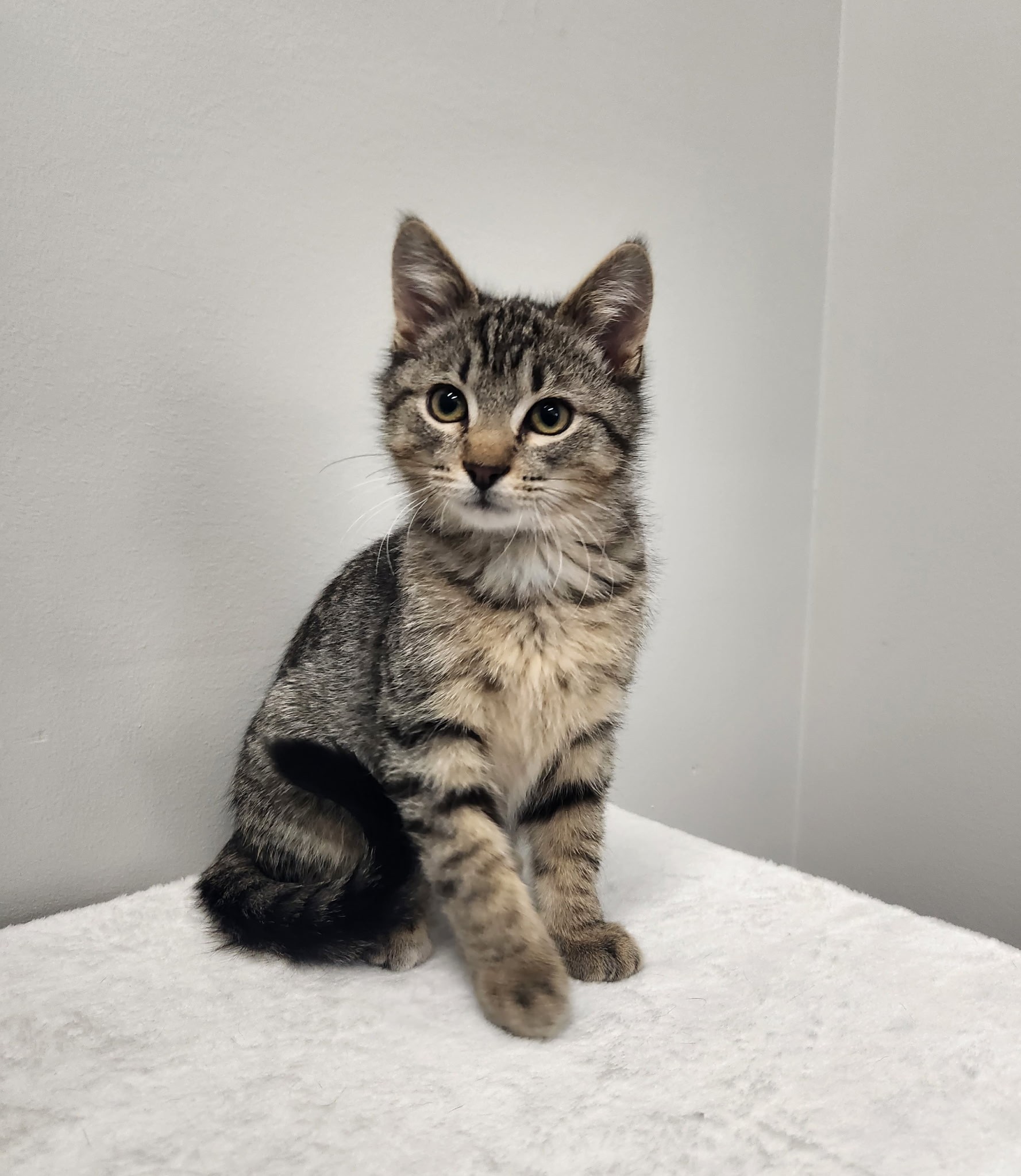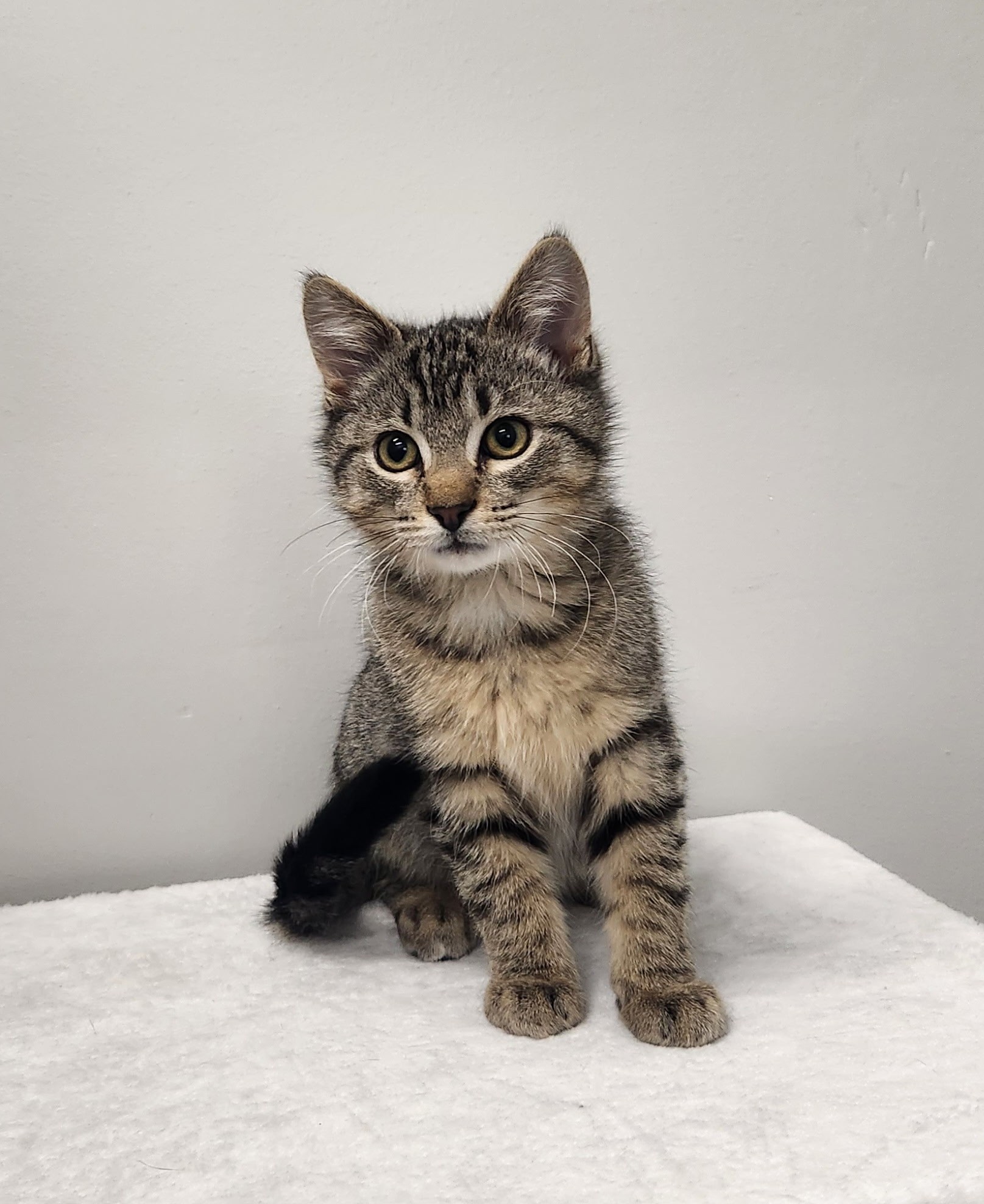 Chad and his brother Mike are 12 week old Tabby kittens with amazing personalities. They are extremely friendly and have lived with young children, other cats, and friendly dogs. Chad has a darling little white spot on one of his back feet. Chad and his brother are available to visit at Warson Woods Pet Supplies Plus adoption room.