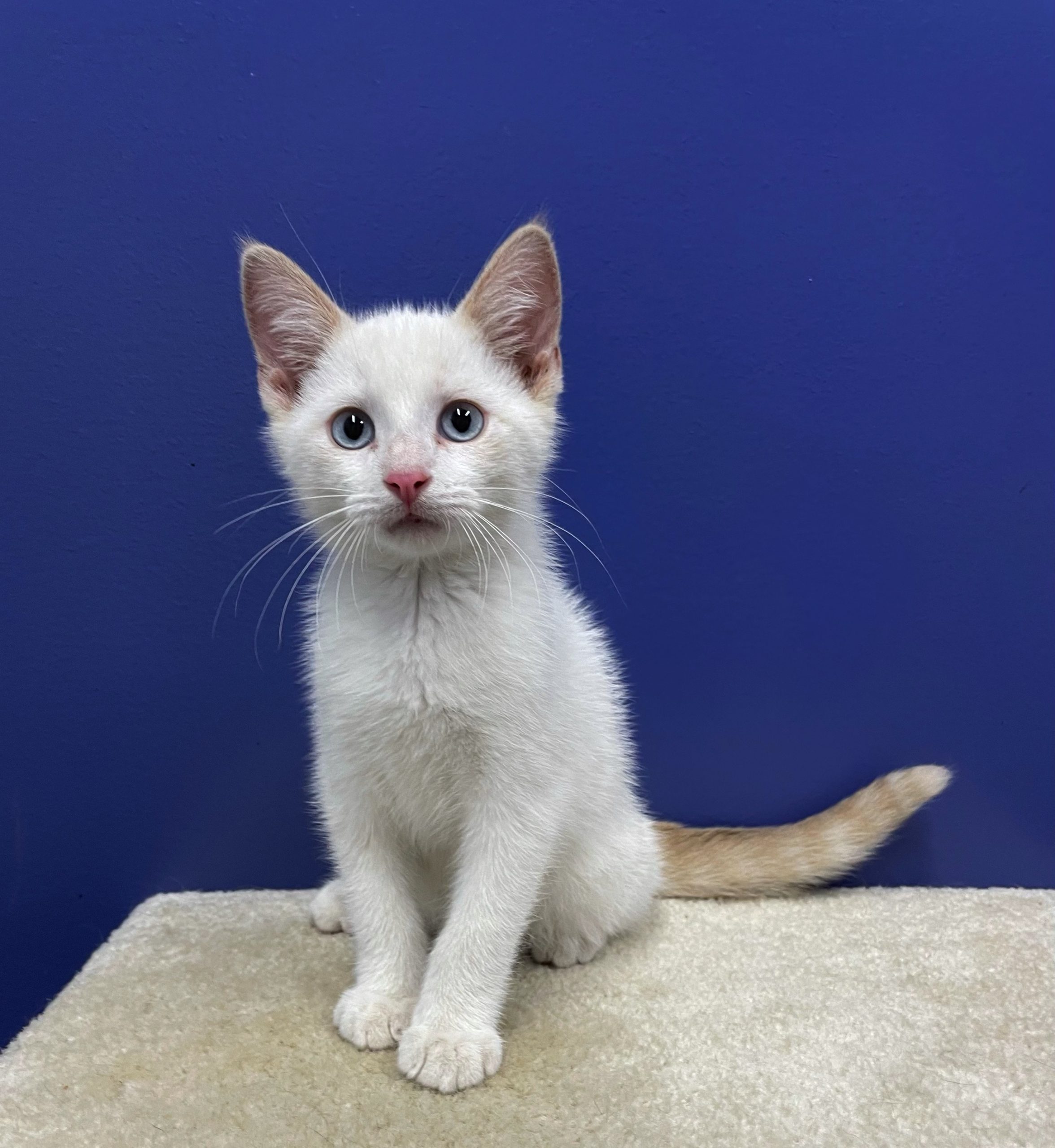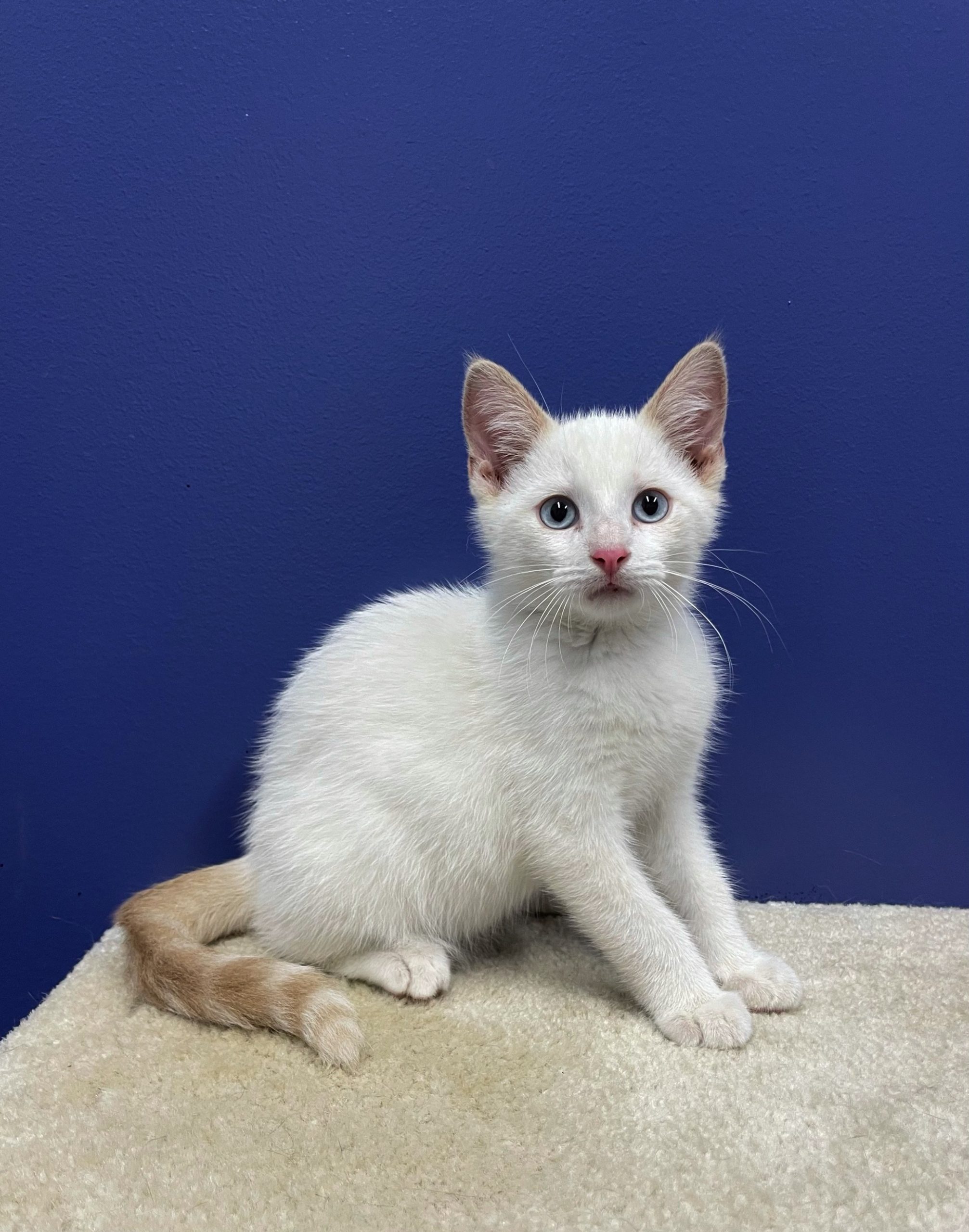 Chip is a beautiful cream point siamese mix kitten with crystal blue eyes. He is approximately 9-10 weeks old and is extremely confident and friendly.