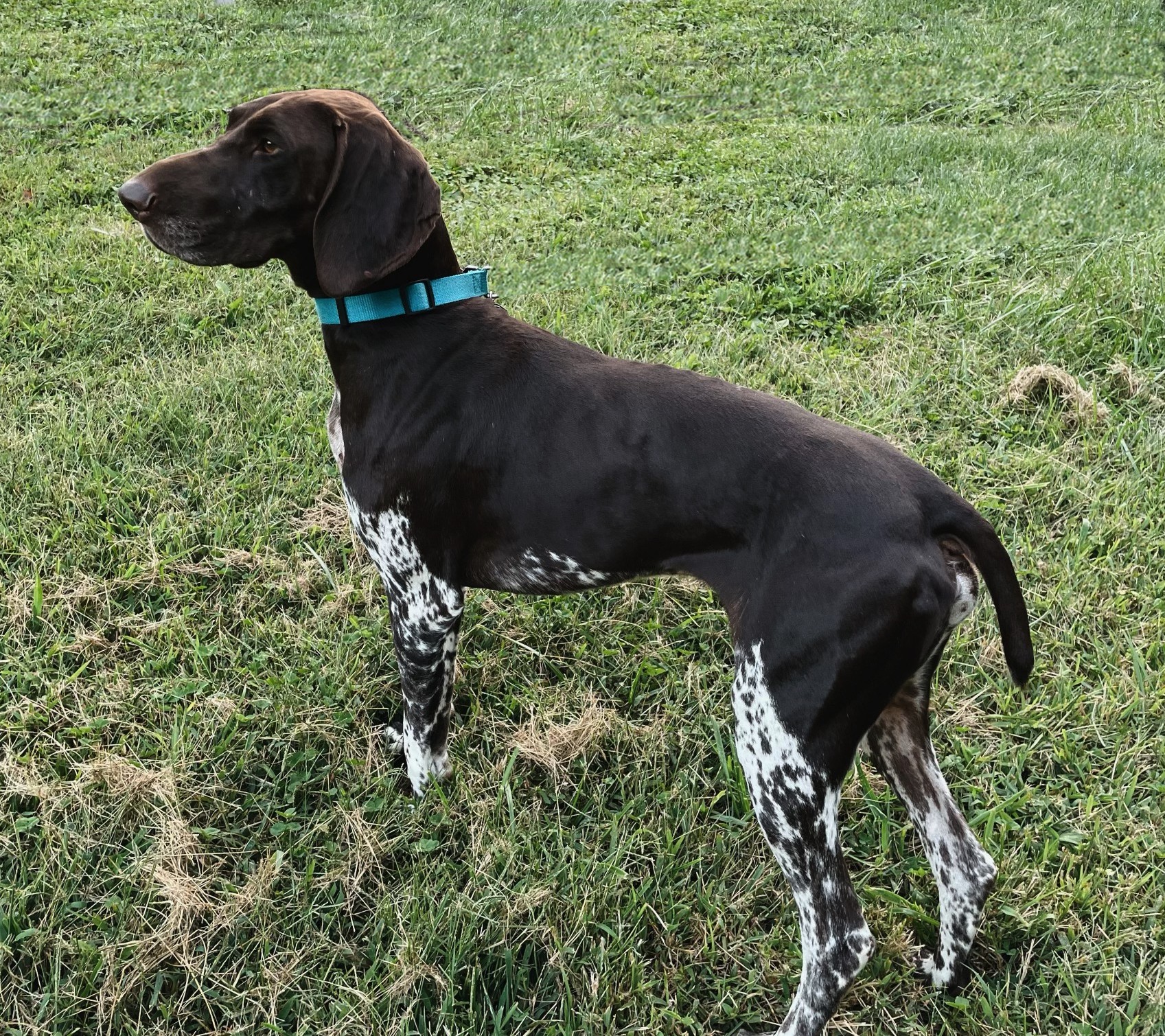Mickey is approximately 4 years old, he’s a beautiful GSP looking for an active home. His coloring is gorgeous, he’s primarily liver color with white legs and chest with ticking. Mickey is a typical pointer with HIGH ENERGY! He will only be adopted to a family with a physical secure fence, and breed experience. Mickey has a very sweet personality, and loves his dog friend in his foster home. Out of state adoptions may be considered under the right circumstances.