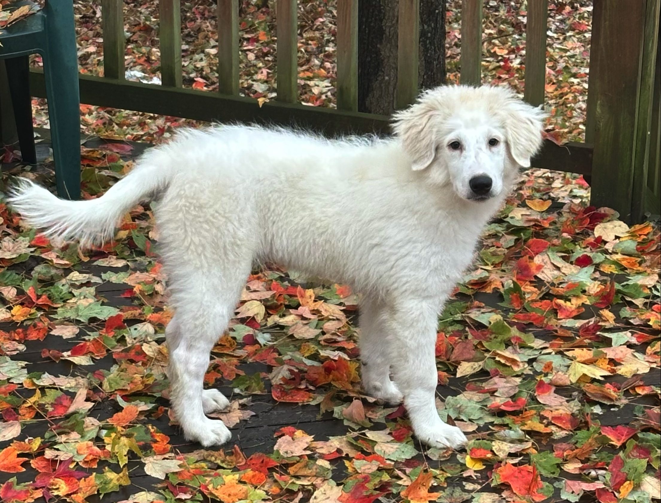 Telluride “Telly” is a 14 week old, fluffy, adorable puppy ready for his new home. His coat is snow white like a mountain top! Telly is learning how to be a good boy and doing so well with his potty training. He is good with dogs, cats, and even chickens. This puppy will be a big boy